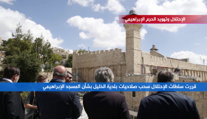 قررت سلطات الاحتلال سحب صلاحيات بلدية الخليل بشأن المسجد الإبراهيمي ونقل صلاحيات المسجد إلى ما يسمى بالمجلس الديني اليهودي في مستوطنة كريات أربع.. وعلق القرار على جدران الحرم من الداخل والخارج.