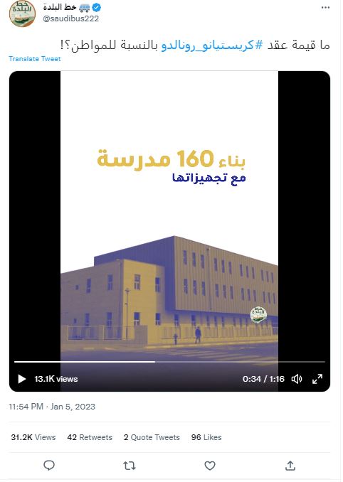 نشر حساب قناة خط البلدة مقطع فيديو يوضح قيمة العقد الذي وقعته السعودية مع اللاعب كريستيانو رونالدو والمشاريع التي يمكن انجازها في السعودية بهذا المبلغ.