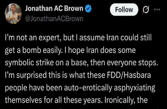 وجاءت التغريدة، قبل يوم من الهجوم الصاروخي الإيراني على قاعدة "العديد" الجوية في قطر، التي تُعد من أهم القواعد العسكرية الأميركية في الخليج الفارسي، و دعا فيها إلى رد "رمزي" من إيران على قاعدة عسكرية أميركية في المنطقة، عقب الهجوم الأميركي على مواقع نووية إيرانية.