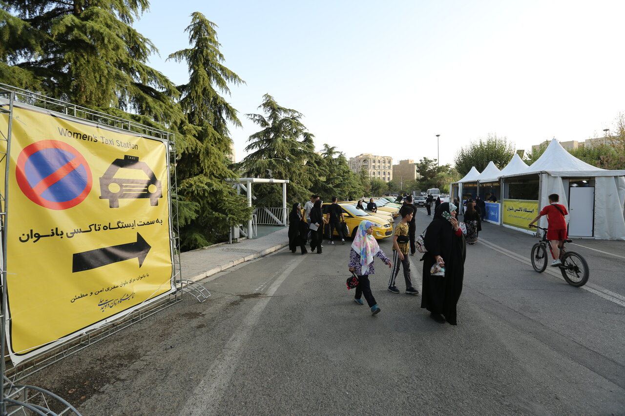 يمتلئ جناح معرض "النساء والإنتاج الوطني" بالزوار بعد الظهر، حيث يسير البعض محمّلين بأكياس التسوق على طريق شمران السريع، بينما يختار آخرون استخدام مترو الأنفاق، لكن جناح تاكسي النساء يحظى بالأولوية بسبب قربه وسهولة الوصول إليه. هذا الجناح أُقيم لأول مرة بمبادرة من منظمة إدارة ومراقبة التاكسيات في طهران، ويعمل فيه 30 سائقة، وفق ما صرحت به شادي مالكي، المديرة التنفيذية للمنظمة.