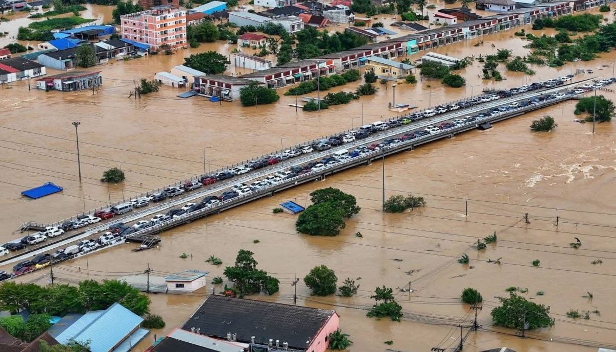 المدينة الجنوبية هات ياي، التي تعد المركز التجاري الأهم في جنوب تايلند، شهدت، يوم الجمعة، معدل هطول أمطار هو الأعلى في يوم واحد.