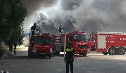 اندلاع حريق في مرفئ كنجان للصيد في منطقة بوشهر جنوب ايران