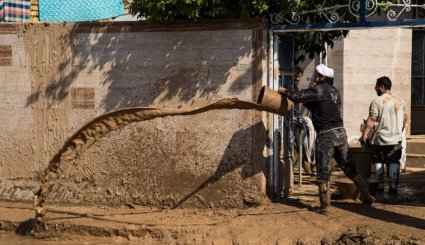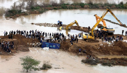 الجهود الشعبية لايقاف السيول في محافظة خوزستان الايرانية
