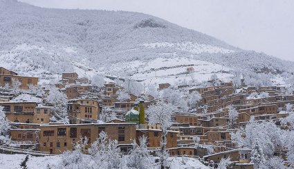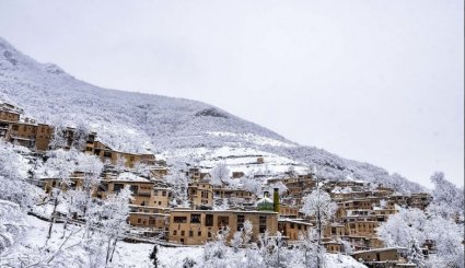 تساقط الثلج في قريةماسولة التاريخية شمال ايران