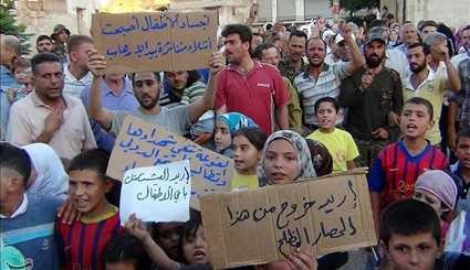 تظاهرات أهالي الفوعة وكفريا مطالبين بفك الحصارعنهم