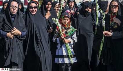 بالصور.. مسيرة بالزهور الى مرقد السيد احمد بن الامام الكاظم(ع) في شيراز