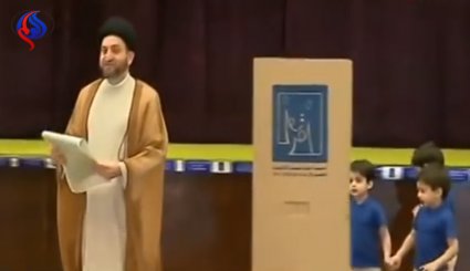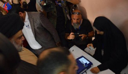بالصور : الصدر يدلي بصوته في الانتخابات البرلمانية في العراق