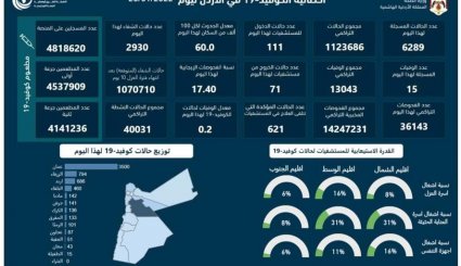 15وفاة و6289 اصابة كورونا جديدة في الأردن