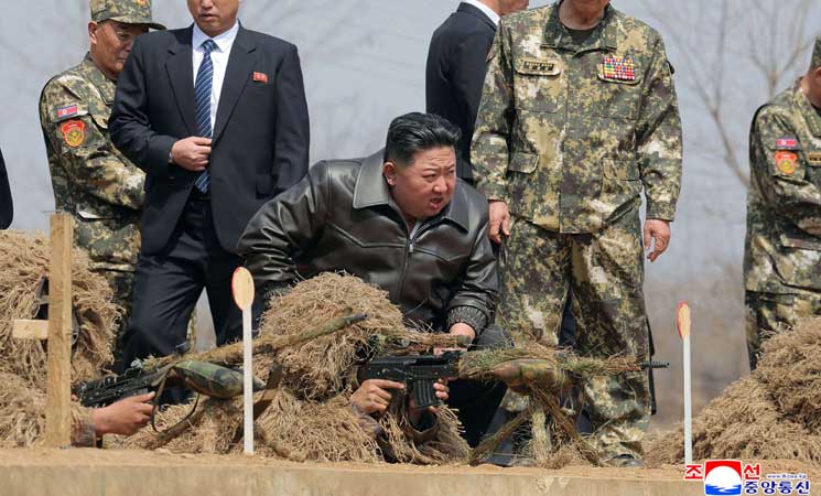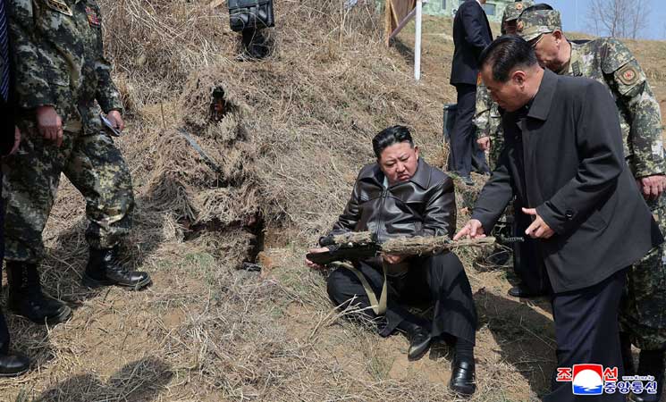 بالصور..زعيم كوريا الشمالية يختبر بندقية قنص بوضعية القرفصاء