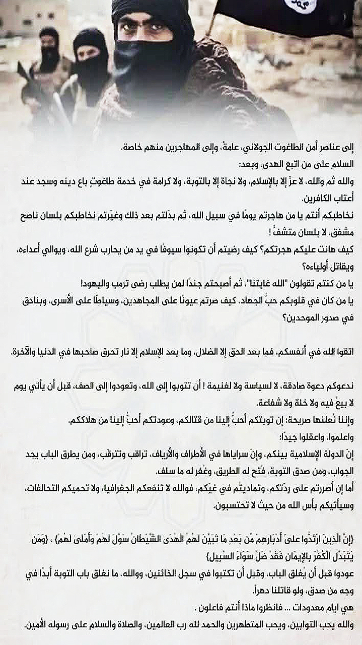 إليكم نص بيان "داعش" الدعائي التهديدي الموجه للهيئة