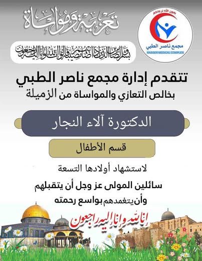 وفي تصريح رسمي، أكد منير البرش، المدير العام لوزارة الصحة في غزة، أن "التسعة أشقاء أبناء الطبيبة آلاء النجار استشهدوا جراء القصف الإسرائيلي على منزلهم في خان يونس".