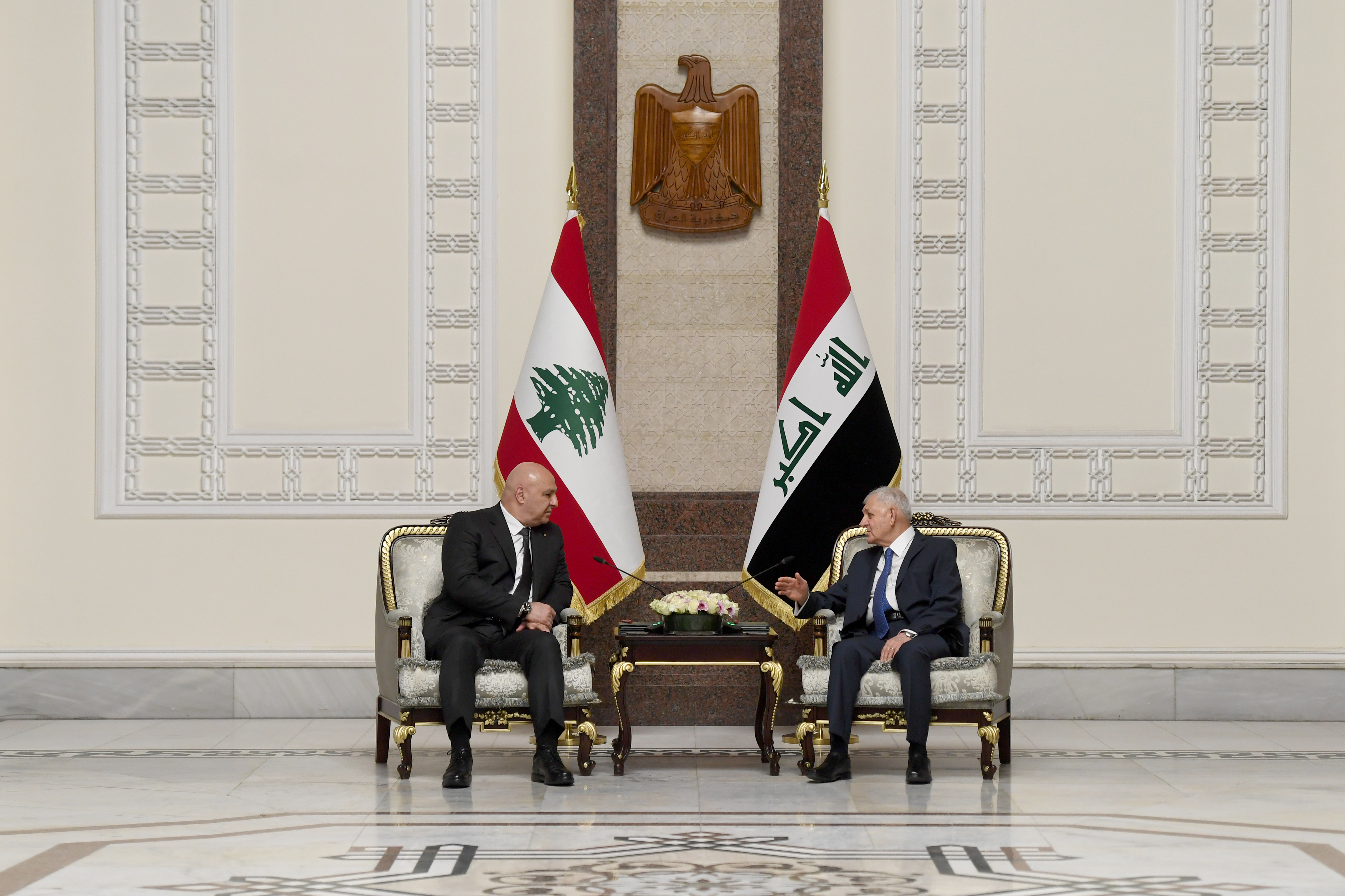 قبل ذلك إستقبل الرئيس العراقي عبد اللطيف جمال رشيد في قصر بغداد، الرئيس اللبناني جوزيف عون والوفد المرافق له.