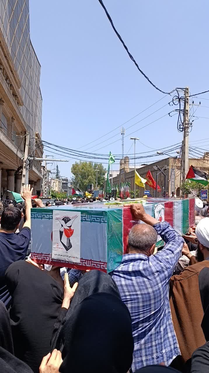 و على صوت "الله أكبر، الموت لأمريكا، الموت لأمريكا، الموت لإسرائيل" خرج الآلاف في محافظة ساري شمالي إيران للمشاركة بتشييع الشهداء لا سيما العالم النووي باكويي وعائلته الذين اغتالتهم يد الغدر الصهيونية الإسبوع الماضي أثناء تواجدهم وعائلاتهم في منازلهم، فطالتهم يد الغدر مع نساءهم وأولادهم وهم نيام، في جريمة إنسانية جديدة تضاف الى سجلّ جرائم الكيان الصهيوني الذي يتطاول يوماً بعد يوم على الأبرياء في لبنان وفلسطين وإيران.