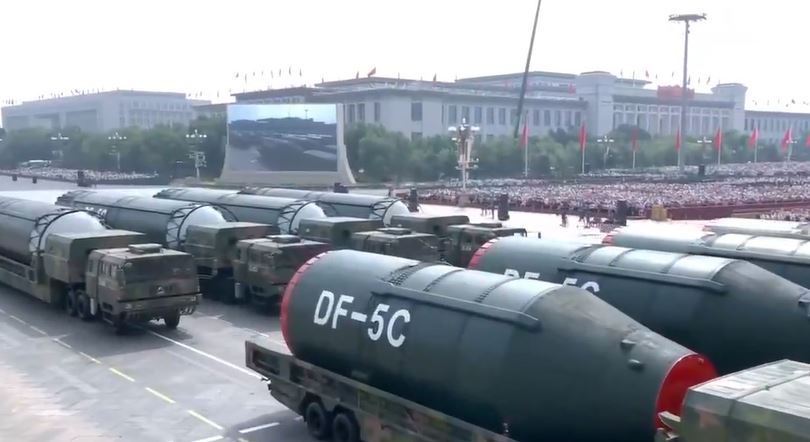 كما عرض جيش التحرير الشعبي الصيني خلال العرض العسكري الرسمي في بكين صواريخ نووية استراتيجية عابرة للقارات من طراز "دونغ فنغ-5 سي".