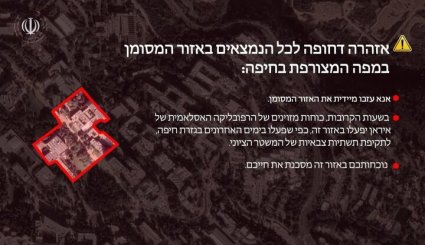 وجه الجيش الايراني تحذيرا لمستوطني احدى المستوطنات في حيفا المحتلة بالاخلاء الفوري.